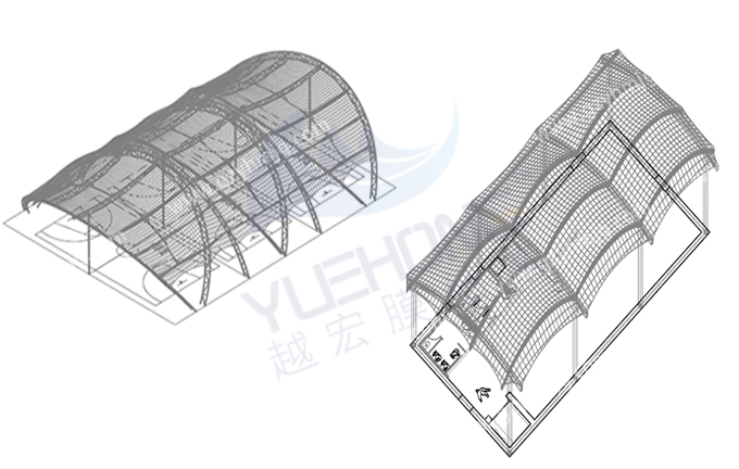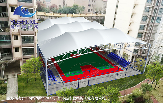 越宏膜結構廠家的風雨球場膜結構是由鋼結構和膜材組成,分別有張拉式膜結構、索膜結構、骨架式膜結構、空間結構式等供選擇,根據不同場景進行設計出個性化膜結構。